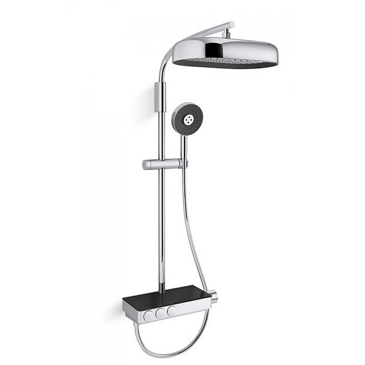 淋浴柱靠側對齊,以配合 Anthem 掛牆式控制組合架的額外存儲空間。