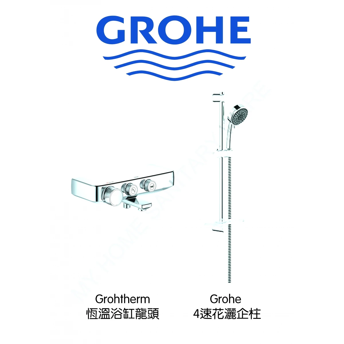 Grohe Grohtherm1 SmartControl 恆溫浴缸龍頭連花灑企柱套裝